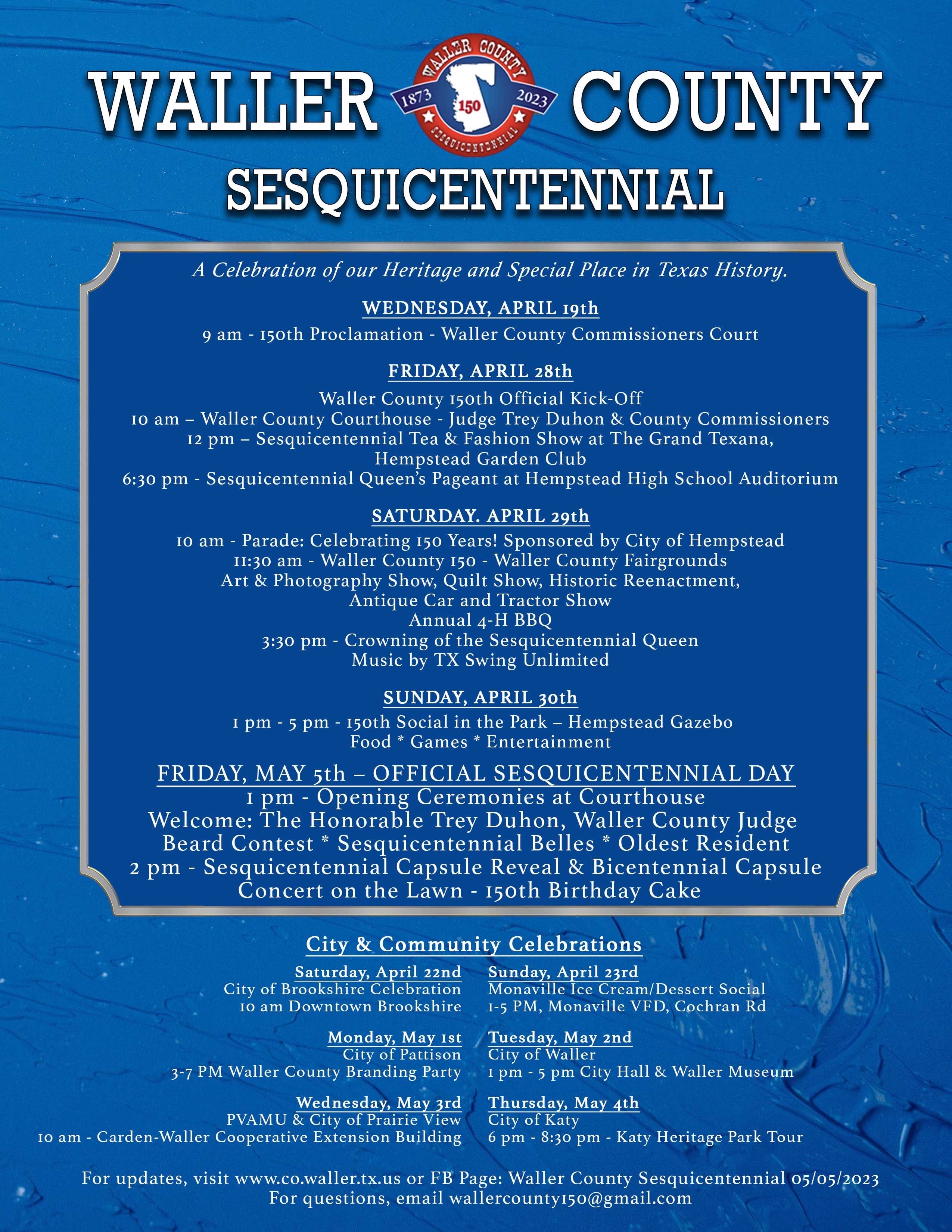 WALLER COUNTY SESQUICENTENNIAL (150TH) CELEBRATION